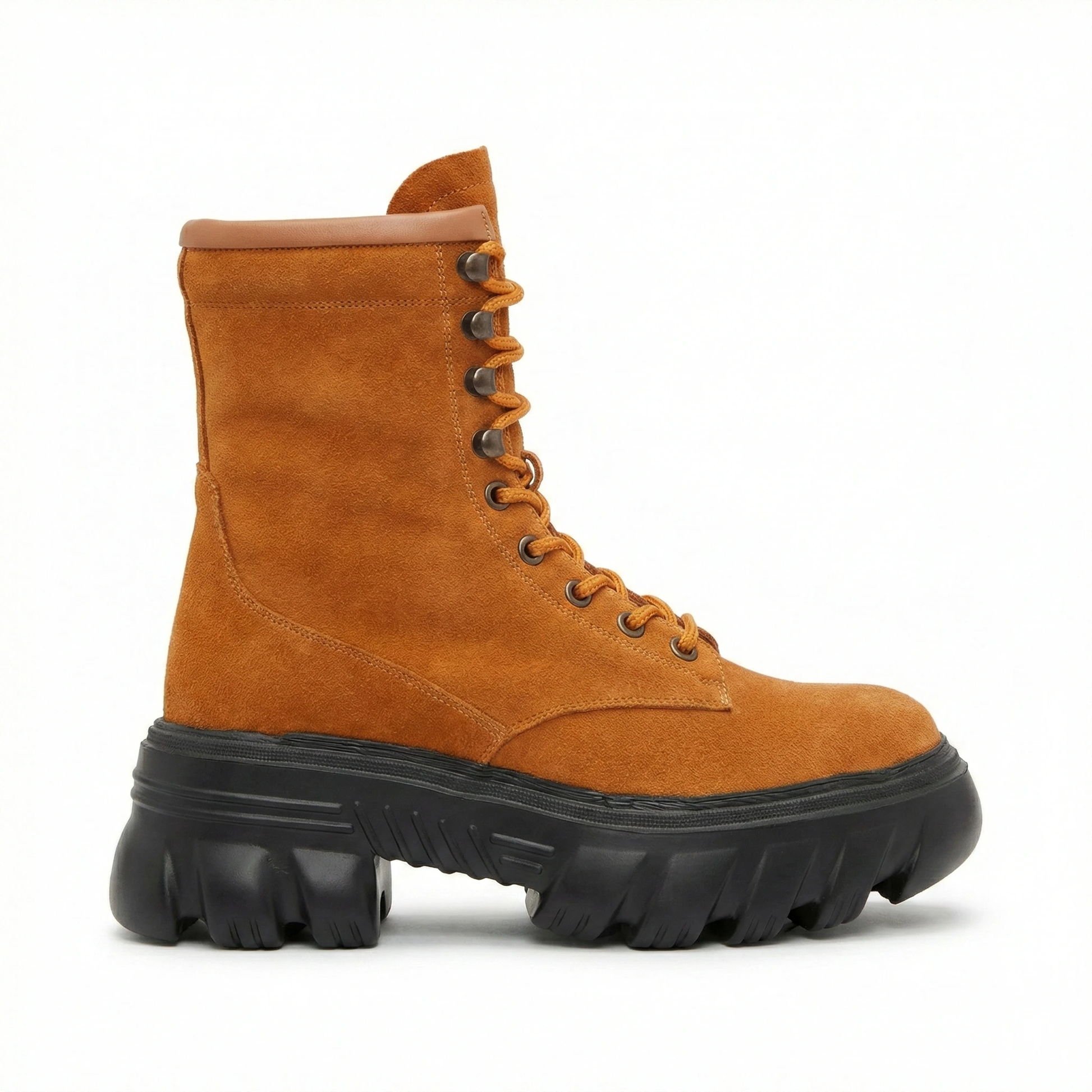 Step into a world where rugged durability meets high-fashion sophistication. These Tan Suede Chunky Platform Combat Boots are designed for the modern woman who refuses to compromise on style or comfort. Crafted from premium, velvet-touch suede in a vibrant ginger hue, these boots offer a bold silhouette that anchors any outfit—from flowy midi dresses to your favorite distressed denim. Whether you are navigating city streets or looking for the perfect stylish boots for autumn walks, this pair provides the ultimate blend of edge and elegance.